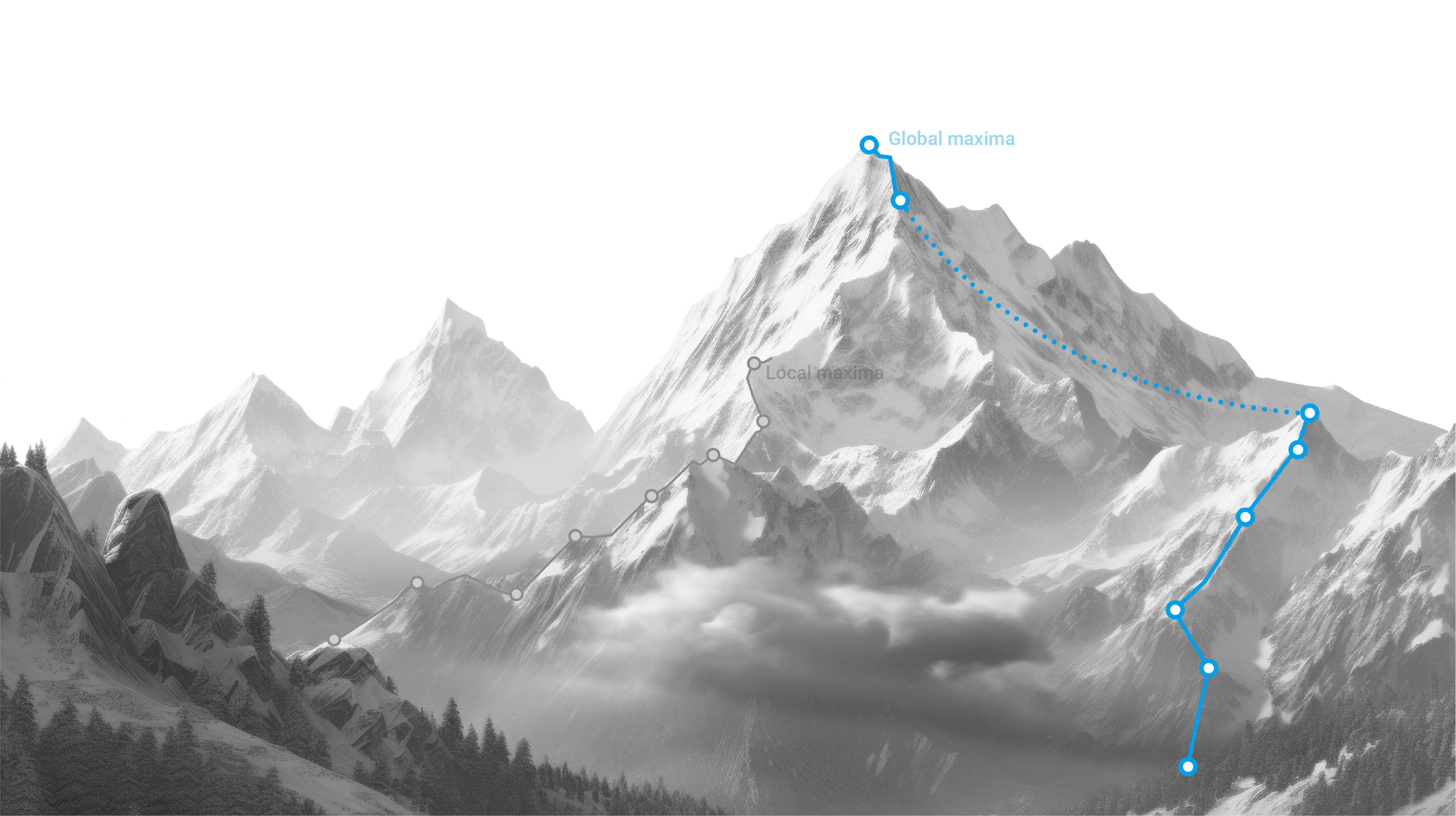 GluGene Therapeutics derives vector performance at the global maxima level—beyond local maxima—by systematically expanding the exploration space and minimizing design bias through sequential and parallel evolutionary strategies that apply multiple selection pressures in stages.